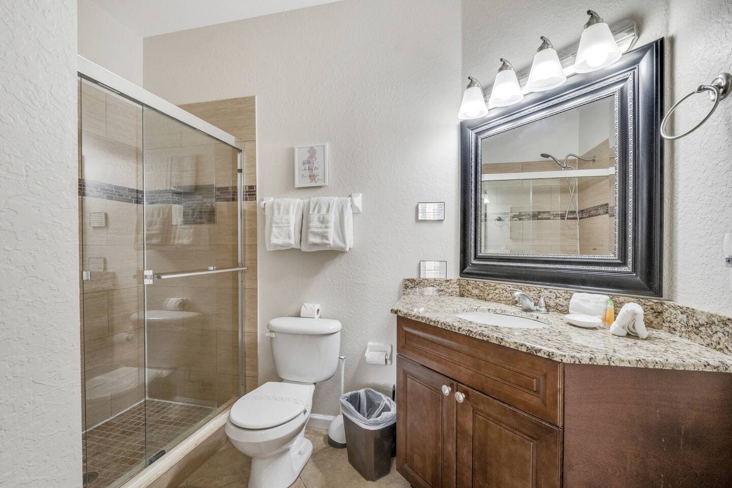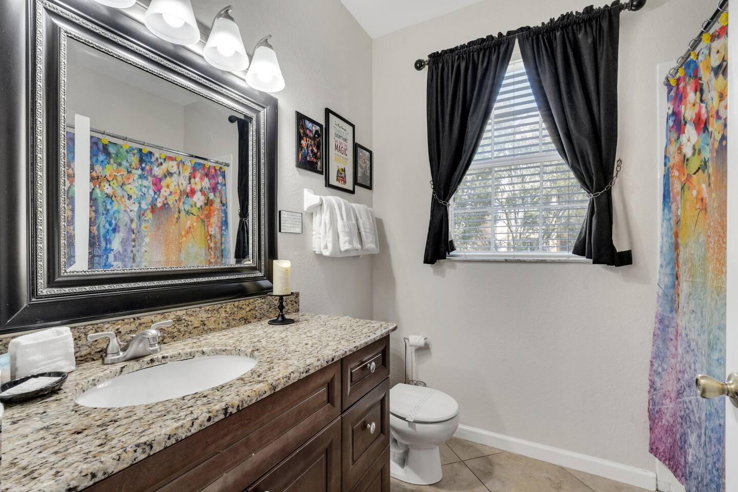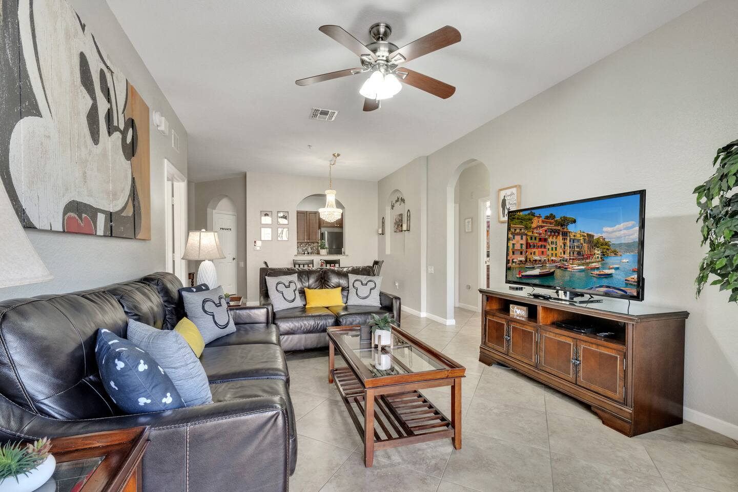 ***Pool and hot tub open, but the Waterpark and Slides will be closed for maintenance from January 5 to February 14, 2026. **** Pay ZERO resort fees when you stay with us — all of the amazing amenities are included at no extra charge. Plus, this building is the closest to the resort’s pool and waterpark, giving you unmatched convenience. Families will also appreciate the thoughtful extras: a Pack ’n Play, high chair, and children’s essentials are provided to make your stay stress-free. One of the closest resorts to Disney filled with so many fun activities and events that Windsor Hills hosts for their guests. We'll provide a calendar of all the activities as you arrive, and what a great place to disconnect, relax, and be fully present with the people you love the most! Set up for families, this condo offers a split layout with the master suite on one side and two themed bedrooms plus a hall bath on the other. Bold bedding, creative lighting, and Disney-inspired touches keep the magic going even after you leave the parks. Living Room Unwind in the bright living room, featuring plenty of seating and Disney décor accents. Perfect for family nights or a quick recharge before heading back out to the parks. Highlights include: ✧ Comfortable seating for the whole crew ✧ Smart TV with streaming options ✧ Fun, cheerful décor ✧ Open connection to kitchen and patio Kitchen Fully stocked and family-ready, the kitchen makes mealtime easy — whether it’s pancakes in the morning, park snacks to-go, or dinner at the table. Highlights include: ✧ Full-size appliances ✧ Cookware, dishes, and utensils provided ✧ Dishwasher for easy cleanup ✧ Dining area for shared meals Master Bedroom The master suite brings color and comfort with a king bed and its own en-suite bathroom for extra privacy. Highlights of the master suite include: ✧ King-size bed with fun, colorful bedding ✧ Private en-suite bathroom ✧ Closet space for unpacking ✧ Smart TV for downtime Other Bedrooms & Bathroom The second bedroom is a Frozen-inspired retreat with icy lights, themed bedding, and artwork to delight kids and fans alike. The third bedroom keeps the Disney magic alive with Mickey & Minnie–themed twin beds. Both share a full hall bath. Highlights include: ✧ Frozen-inspired queen room with snowflake + icicle lights ✧ Themed bedding & art ✧ Mickey & Minnie twin room (2 beds) ✧ Shared full bathroom Outdoor Space Enjoy the screened patio for a quiet morning coffee or a relaxing evening hangout. Location We are only: ✧ 1.5 miles to Disney World! ✧ 15 minutes to Universal Studios ✧ Minutes to dining & shopping in Orlando/Kissimmee ✧ 25 minutes to Orlando International Airport Attention to Detail ✔ Sparkling clean on arrival ✔ Washer/dryer & detergent included ✔ Premium linens and essentials provided ✔ First aid kit in the kitchen