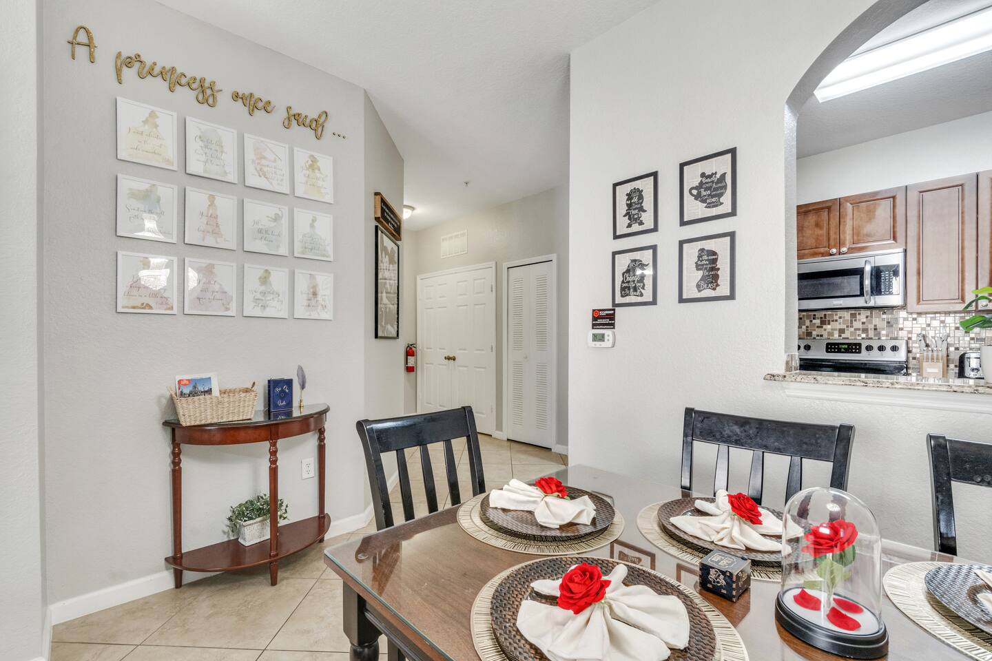 Welcome to our Magic Moments Home! Located in the popular Windsor Hills Resort, 1.5 miles from Disney, we are in the main building which is closest to the pool. Steps away from the waterpark/splash pad and pool area where they host live music, DJ, and so many fun activities and compeititons for both kids and adults! In our home, you'll find a sparkling, Frozen-themed room, a room to hang with Mickey and his friends, and a Beauty and the Beast Dining Room which brings Disney into our home.