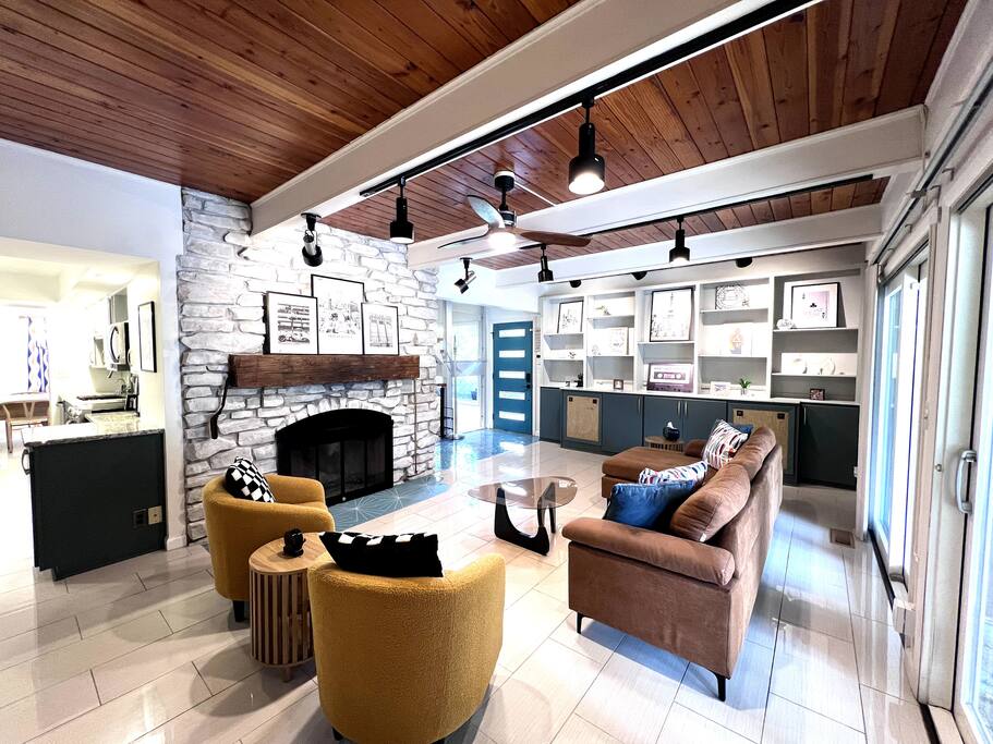 Escape to The Checkered Pad — a unique Mid-Century Modern retreat on a full acre, just 8 minutes from the airport and 15 minutes to downtown attractions. Perfect for large groups, this 4-bedroom home features a stunning 12-person dining table, open living areas, and a fully fenced backyard with a breezeway and patio lights. Ideal for sports fans, concert-goers, bachelorette/bachelor groups, and anyone eager to explore Indianapolis. Plenty of seating and space to make memories under one roof!