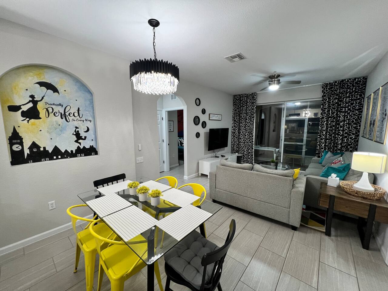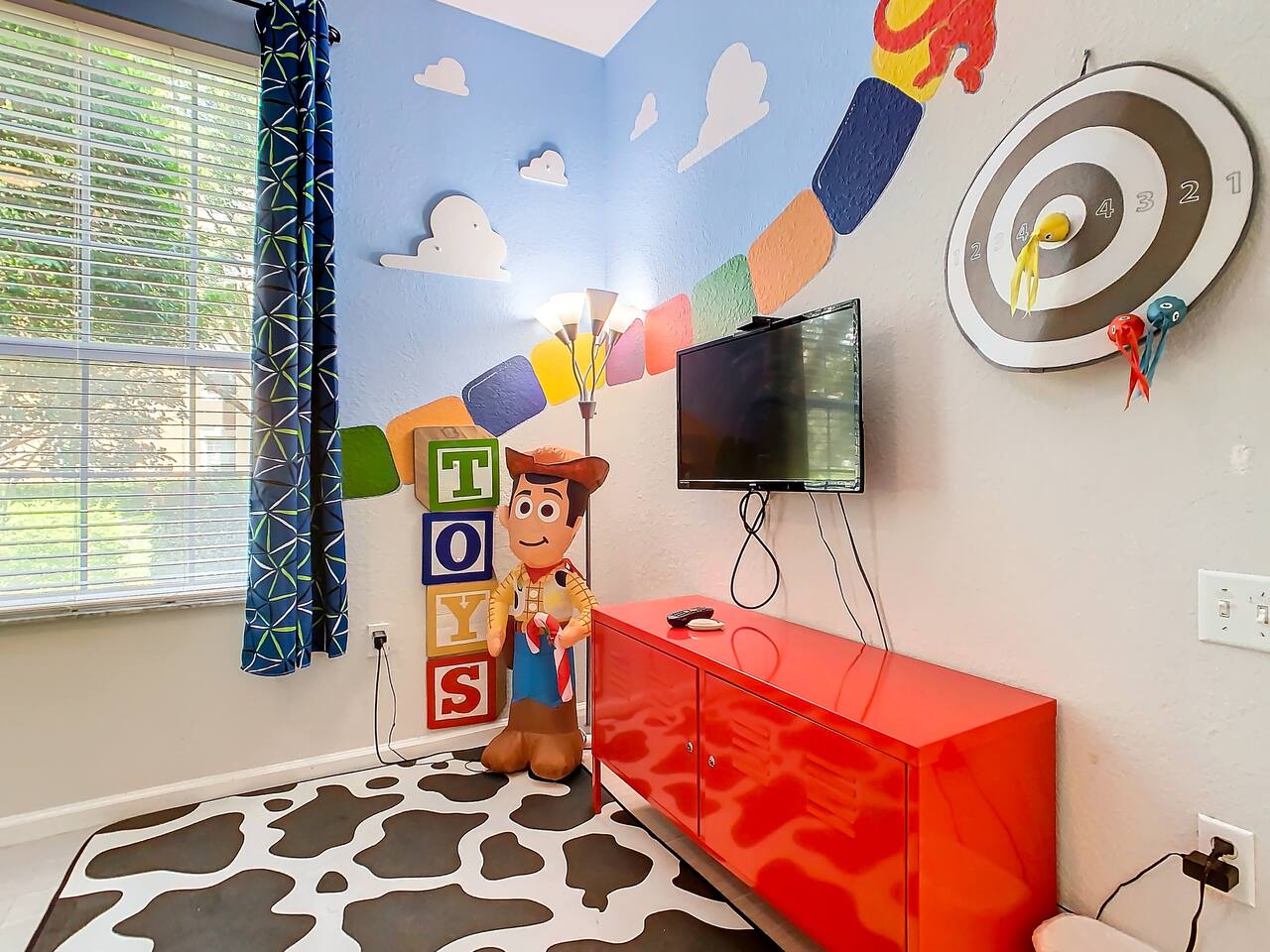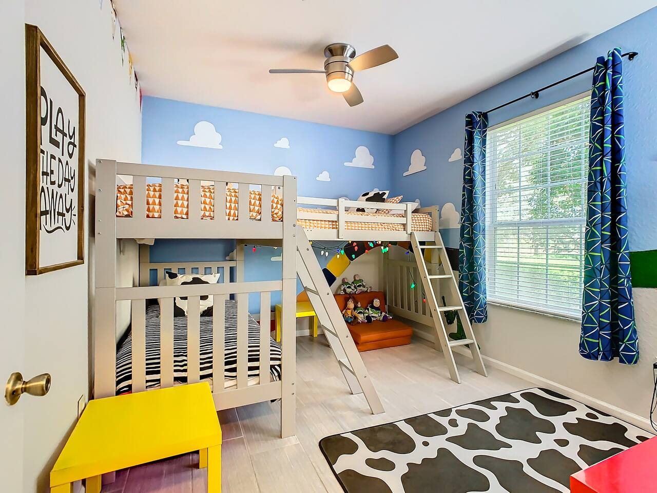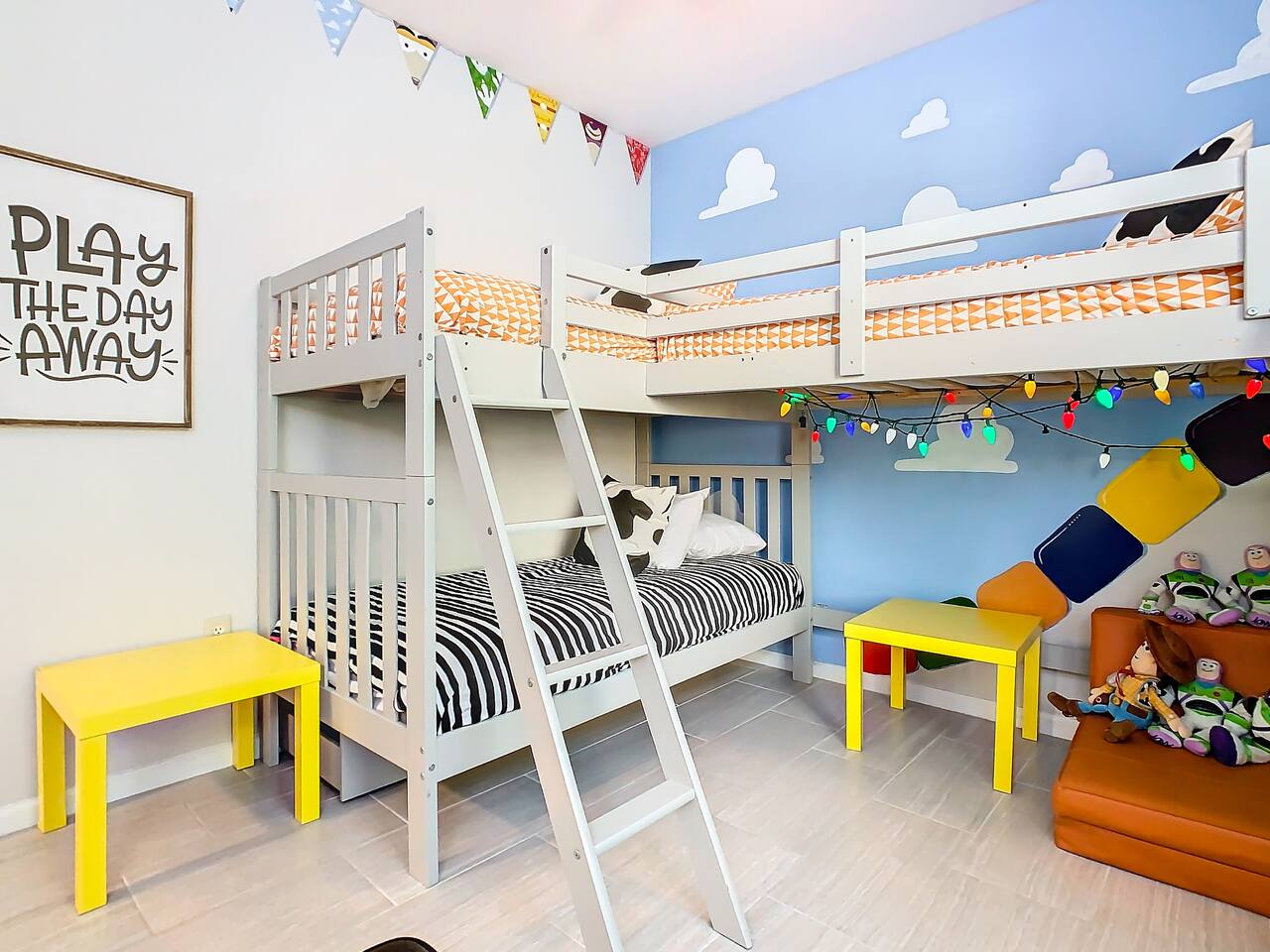 ***Pool and hot tub open, but the Waterpark and Slides will be closed for maintenance from January 5 to February 14, 2026. **** Pay ZERO resort fees when you stay with us — all of the amazing amenities are included at no extra charge. Plus, this building is the closest to the resort’s pool and waterpark, giving you unmatched convenience. Families will also appreciate the thoughtful extras: a Pack ’n Play, high chair, and children’s essentials are provided to make your stay stress-free. One of the closest resorts to Disney filled with so many fun activities and events that Windsor Hills hosts for their guests. We'll provide a calendar of all the activities as you arrive, and what a great place to disconnect, relax, and be fully present with the people you love the most! This condo is designed with both adults and kids in mind. The master suite offers a refined Disney-inspired retreat, while the two other bedrooms bring the magic to life with Lion King and Toy Story décor. A split layout keeps the master private on one side with the other two bedrooms and hall bath on the other. Living Room The bright living room offers a cozy place to gather, relax, and recharge after busy park days. Highlights include: ✧ Spacious seating for the whole group ✧ Smart TV with streaming access ✧ Subtle Disney décor accents ✧ Easy access to kitchen & patio Kitchen The kitchen comes fully stocked with everything you’ll need — from park-day breakfasts to family dinners around the table. Highlights include: ✧ Full-size appliances ✧ Dishes, cookware & utensils provided ✧ Dishwasher for easy cleanup ✧ Dining area for shared meals Master Bedroom The master suite is perfect for adults to unwind, with tasteful, grown-up Walt Disney–themed décor, a king bed, and private en-suite bath. Highlights of the master suite include: ✧ King-size bed with premium linens ✧ Refined Disney décor touches ✧ Private en-suite bath ✧ Closet space & Smart TV Other Bedrooms & Bathroom The second bedroom has a queen bed set against a stunning Lion King wall mural. The third bedroom is Toy Story–themed with custom bunkbeds — three twin beds total, including two uppers and one lower, plus a fun play activity area under the second upper bunk. Highlights include: ✧ Lion King–inspired queen bedroom with mural ✧ Toy Story–themed bunk room with 3 twin beds ✧ Play/activity space built into bunk design ✧ Shared full hall bath Outdoor Space Step out onto the screened patio to relax with morning coffee or a nightcap after a day of fun. Location We are only: ✧ 1.5 miles to Disney World! ✧ 15 minutes to Universal Studios ✧ Minutes to restaurants & shopping in Orlando/Kissimmee ✧ 25 minutes to Orlando International Airport Attention to Detail ✔ Sparkling clean on arrival ✔ Washer/dryer & detergent included ✔ Premium linens and essentials ✔ First aid kit in the kitchen
